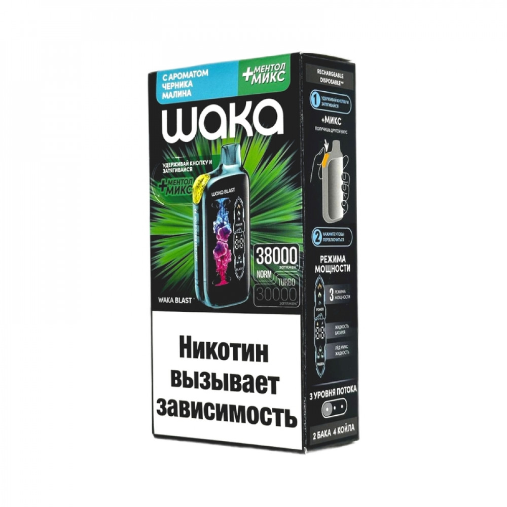 WAKA BLAST 38000 Hard - Черника малина + ментол микс - купить в Заполярном